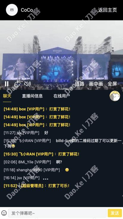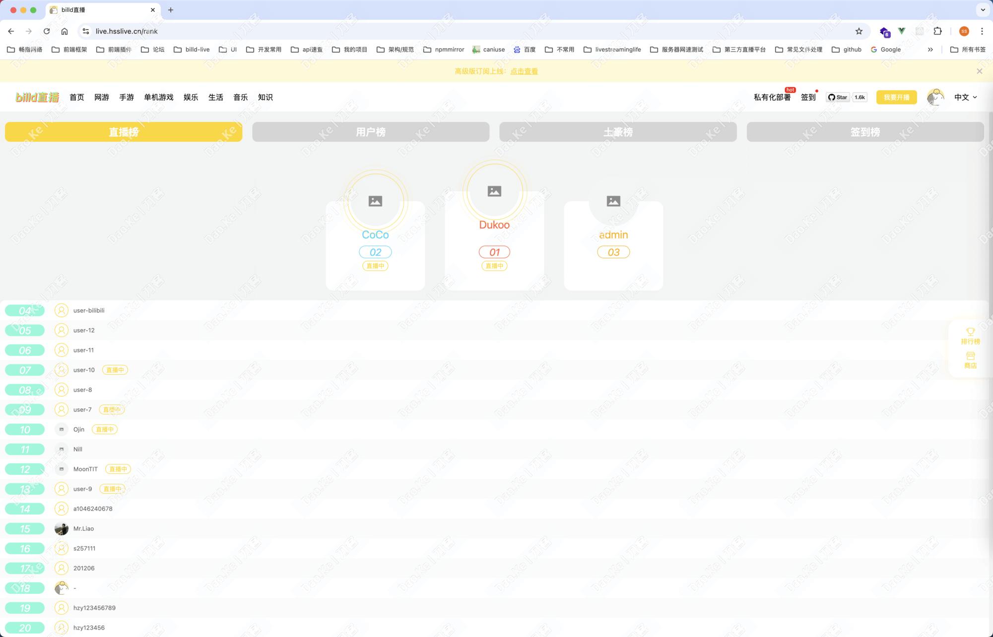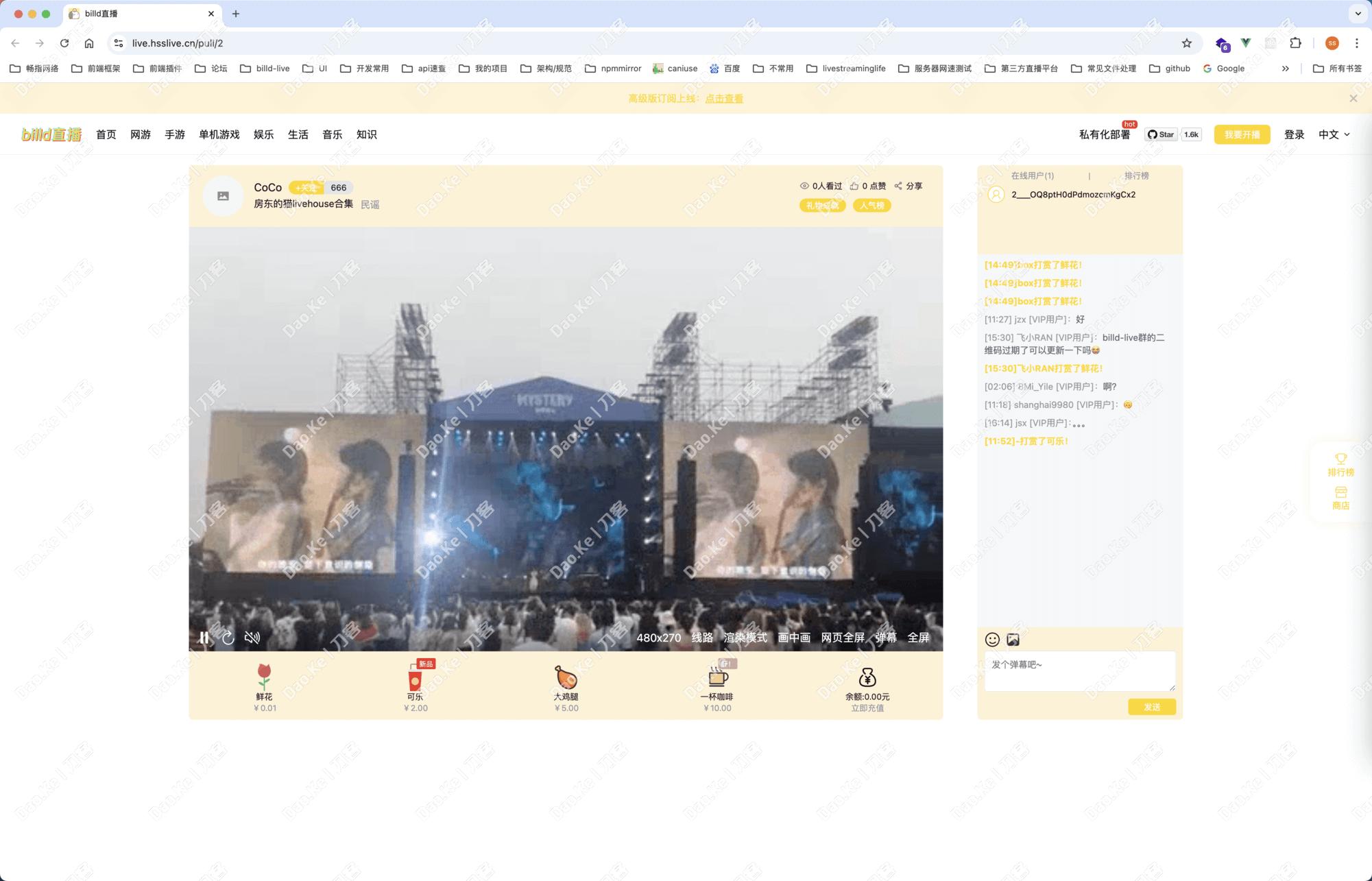 billd 直播间,目前实现了类似 bilibili 的 Web 在线直播功能,即你(房主)可以发布直播,别人进入你的直播间后能看到你的直播内容;而你也可以作为观众,进入别人的直播间看别人的直播内容。