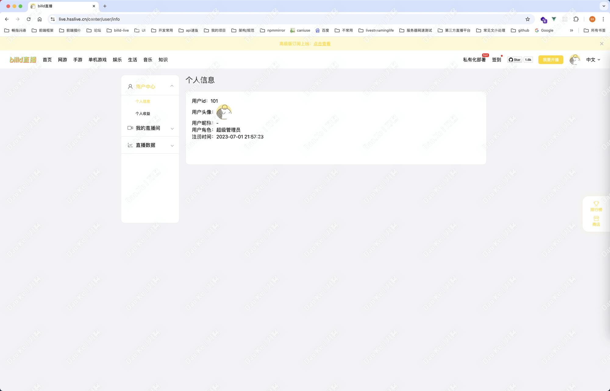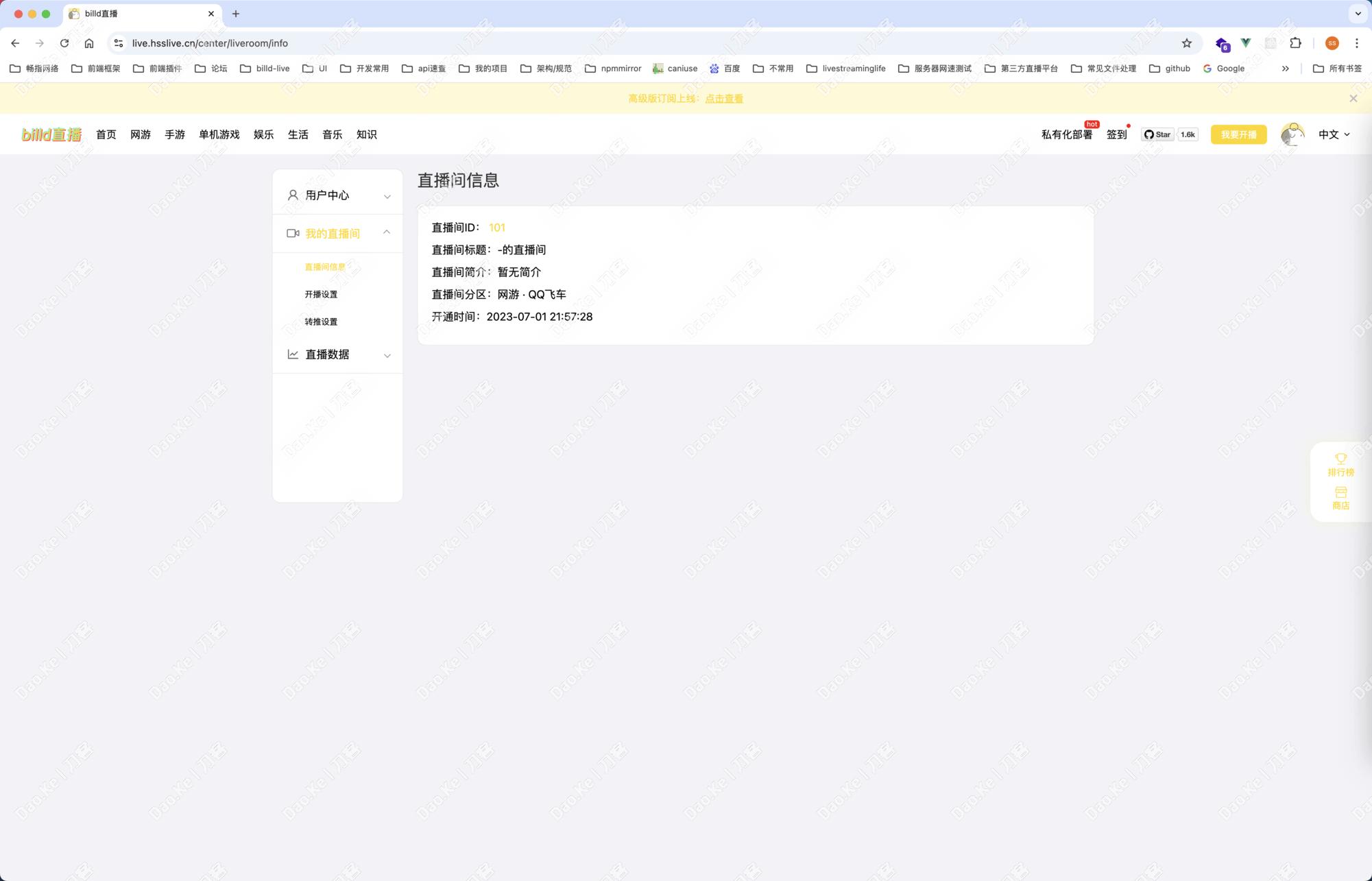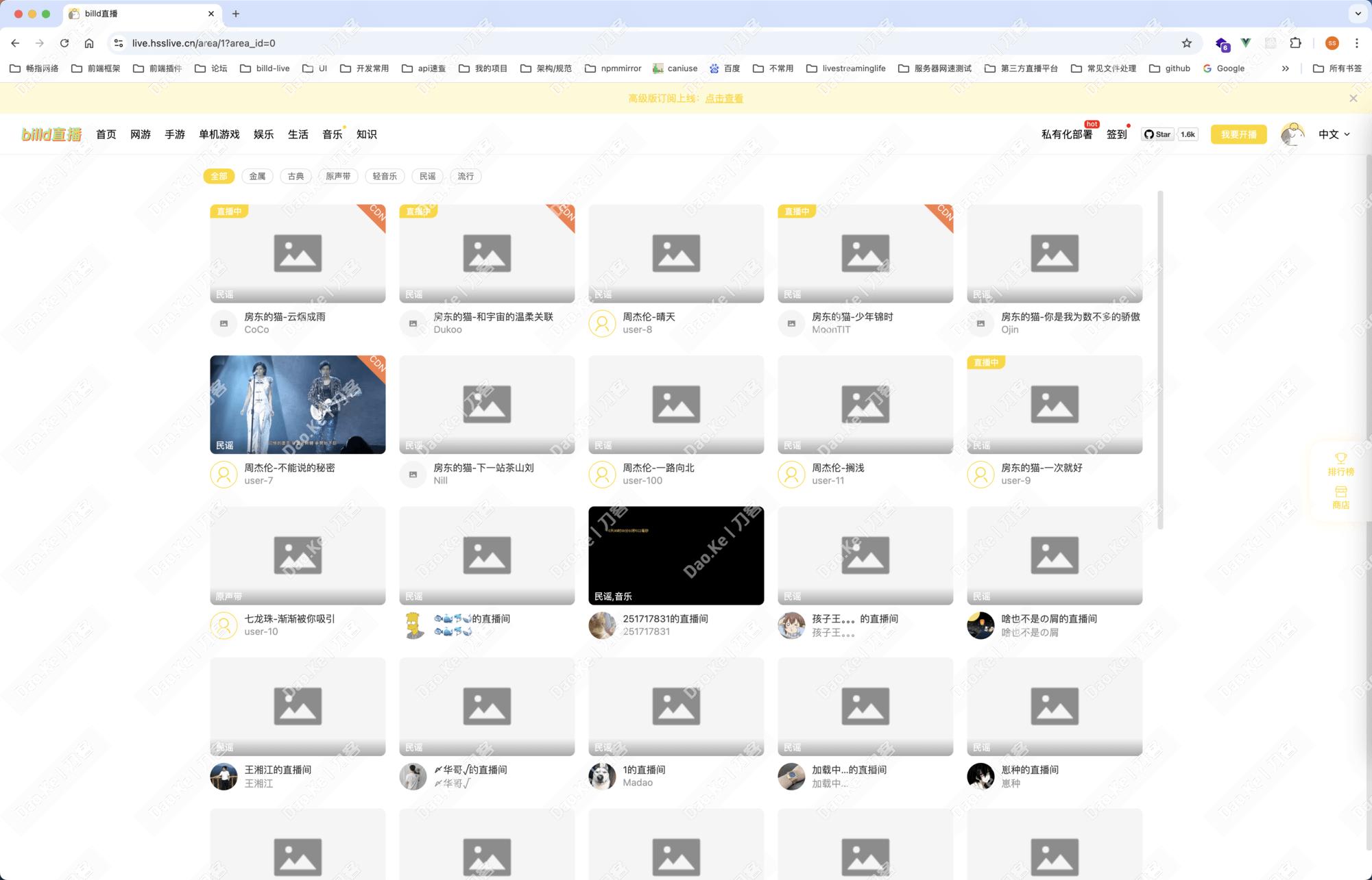 billd 直播间,目前实现了类似 bilibili 的 Web 在线直播功能,即你(房主)可以发布直播,别人进入你的直播间后能看到你的直播内容;而你也可以作为观众,进入别人的直播间看别人的直播内容。